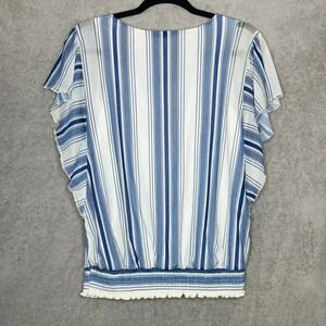 Sara Michelle Womens Top Small Blue Striped Short Sleeve Scoop Neck Casual Elastic Band Bottom