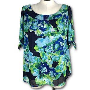 Sara Michelle Womens top size 3X multicolored floral watercolor