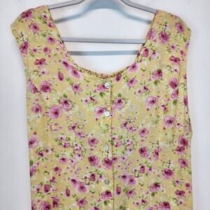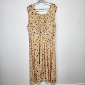 Sara Morgan Floral Maxi Dress Size XXL Yellow Sleeveless Rayon Smocked Cottage