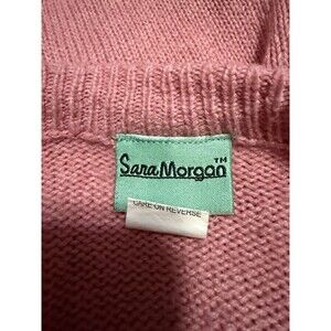 Sara Morgan Knit Cardigan Size M Pink Pockets Vintage. Back does not have the same knit design. Looser knit in the front. Two pockets. Button front. Vintage 1970s/1980s. Good condition
