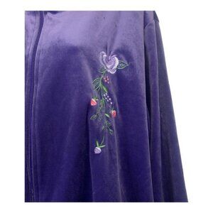 Sara Morgan Womens 2X Purple Velour Zip-Up Jacket With Embroidered Floral Design