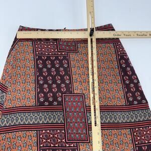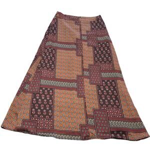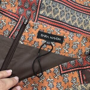 Sara Navon Skirt Womens XS Brown Orange Boho Patchwork A-Line Lined Midi Floral