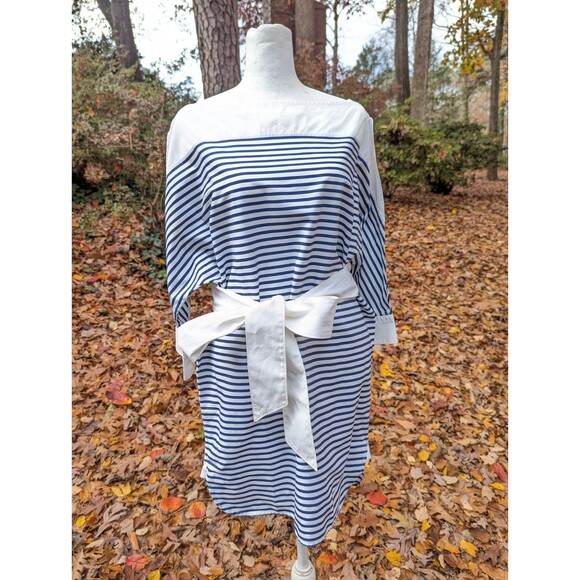 Sara Roka Split Sleeve Blue And W Dress Classic Size Small $985