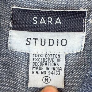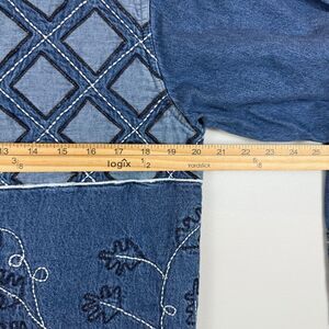 Sara Studio Jacket Women Sz M Blue Denim Embroidered Button Front Patchwork Boho
