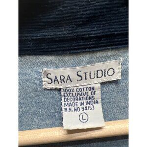 Discover the Sara Studio Vintage Chambray Denim Corduroy Trim Vest Embroidered Shirt, a classic piece that blends timeless style with modern comfort. Perfect for layering, it features intricate embroidery on durable cotton fabric, offering both elegance and versatility for any wardrobe. Gently worn, good condition, mild wash wear
