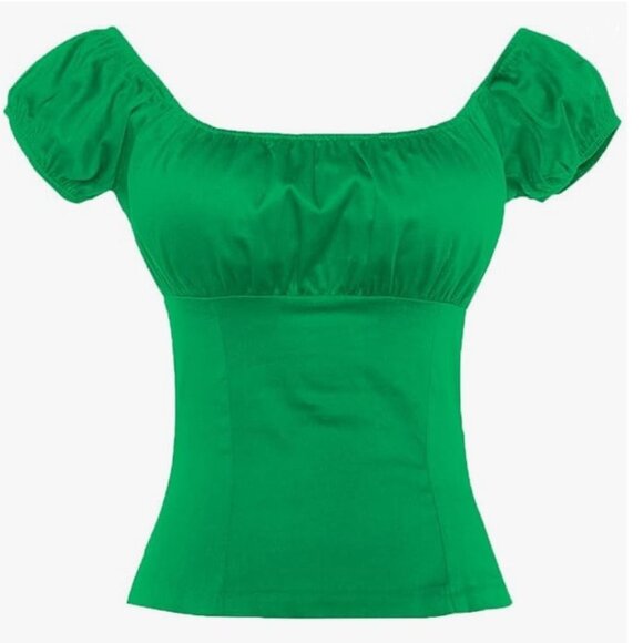 Sara USA Green Rockabilly Pinup Peasant Top