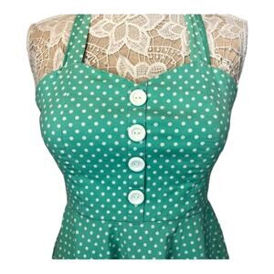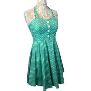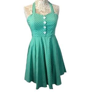 Sara U.S.A Vintage Retro Pin Up Halter Dress Green and white polkdot size large
