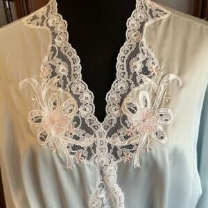 This is a beautiful SaraBeth ice blue satin robe.