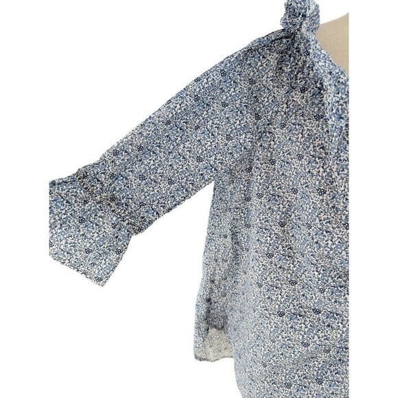 Sara Campbell Women Blue Floral Print Organic Cotton Blouse Size Medium