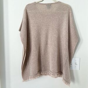 Tan crewneck poncho with fringed hemline. In VGUC.