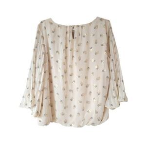 Sara Michelle floral beige blouse butterfly sleeves PXL