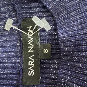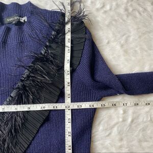 Sara Navon shimmer feather fringe sweater blue sweater with shimmer . Feather design throughout the front . Good condition