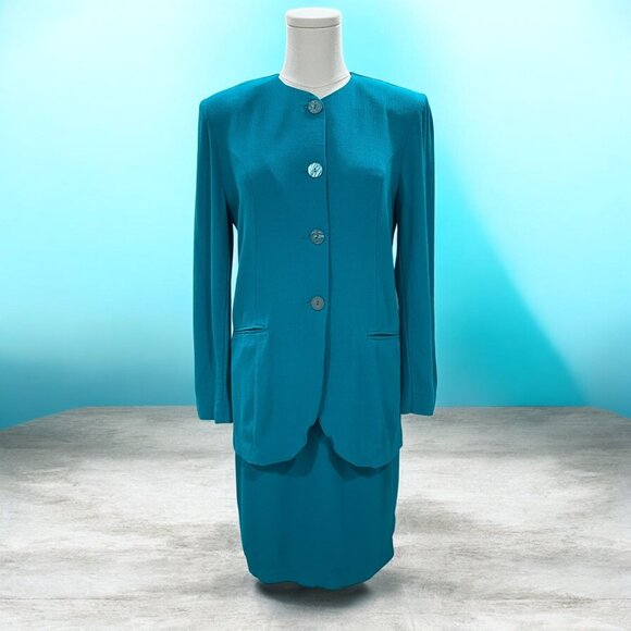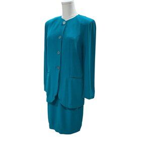 Sarah Alexander Teal Skirt Suit Set Size 4 6 Vintage Career Mod Retro Minimalist