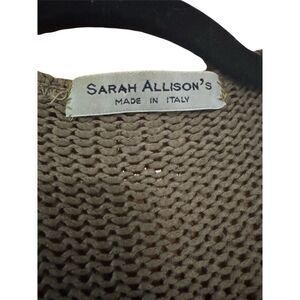 Sarah Allison's cardigan in size M offers a casual style with a regular fit. This women's sweater is crafted from a blend of cotton and acrylic, featuring a short sleeve design. The Green cardigan is machine washable and made in Italy. It is pre-owned. Keywords: Sarah Allison's, cardigan, sweater, women's, size M, Green, cotton, acrylic, short sleeve, casual, Italy, machine washable, pre-owned.