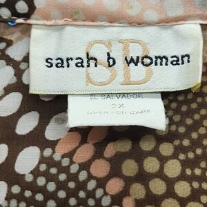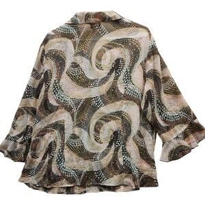 Sarah B Woman Blouse 2X Brown Beige Metallic Shimmer Ruffle Sleeve Button Front