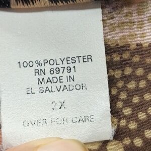 Elevate your style with this Sarah B Woman blouse in 2X Plus Size. Crafted from lightweight fabric with metallic shimmer threads, it features an abstract print in brown, beige, and gold tones, a button front closure, and long sleeves with ruffled cuffs for a feminine touch. Perfect for events, office wear, or special outings.