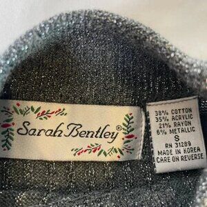 Sarah Bentley Metallic Mock Neck Turtleneck Sweater Short Sleeves Ribbed Size S