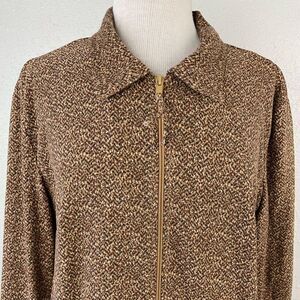 I love Sarah Bentley styles and this cute light weight jacket does not disappoint. It features a stretch fit, “tiger colors” and is in excellent preowned condition. It measures 21 inches armpit to armpit and 26 inches in length from shoulder to hem.