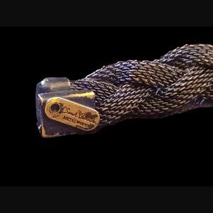Sarah Cavender Metal Works Black And Brass Mesh Beaded Bracelet 7"