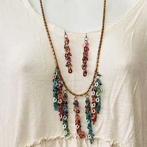 Sarah Cavender Metalworks 32.5" Long Multi Color Fringe Necklace & Earrings Set