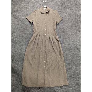 #SarahChapmanDress, #GinghamMidiDress, #BrownSummerDress, #ShortSleeveDress, #MidiDressSize2, #CasualChicDress, #VintageInspiredLook, #PreppyStyle, #ButtonFrontDress, #WomensMidiDress