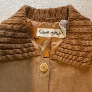 Sarah Chapman tan suede and wool blend knit long sleeves jacket size M Medium