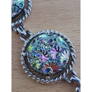 Sarah Cov COVENTRY Textured Round Link Silver Tone Bracelet 7in MEDIUM