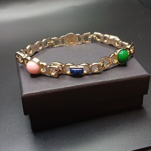 @Sarah Cov Beautiful Vintage Goldtone Colorful 8" Bracelet Great Pre-Owned Condition