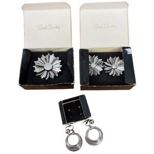 Sarah Coventry 6228 / 7022 / 7228 Lot 3 Piece Earings Broach Silver Tone Clip On