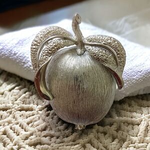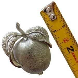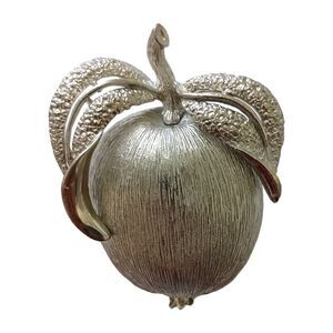 Sarah Coventry Apple Brooch Pendant Adams Delight Vintage 60s Silver Tone MCM.