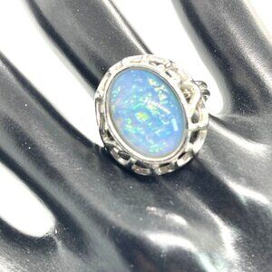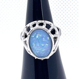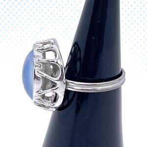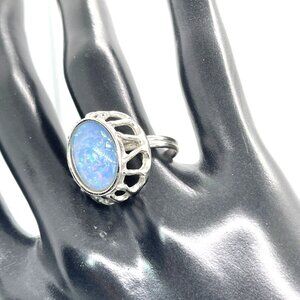 Sarah Coventry Blue Iridescent Cabochon Adjustable Silver Tone Ring Size 7 VTG