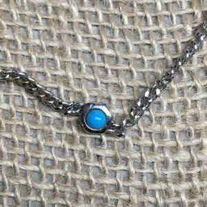 Sarah Coventry dangle tag, Small size or girl’s size delicate Silvertone bracelet with turquoise blue colored bead in a hexagon shaped setting!