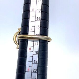 This vintage Sarah Coventry ring showcases an elegant glass faux tiger eye stone set in a gold-tone band. Its timeless design offers sophistication, making it a versatile accessory for various outfits and occasions. The smooth finish and classic appeal are testament to its craftsmanship, lending a touch of refined elegance to the wearer.