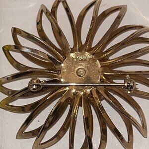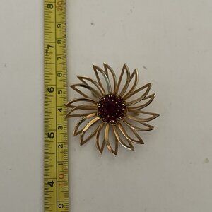 Sarah Coventry Cov Mid Century Gold Tone Flower Brooch Dark Red Rhinestones Pin