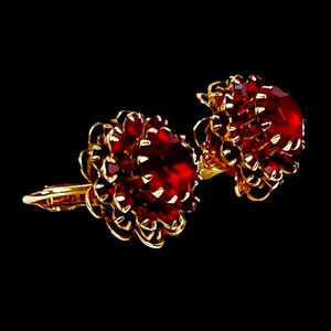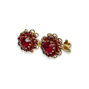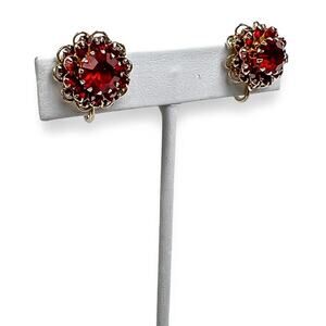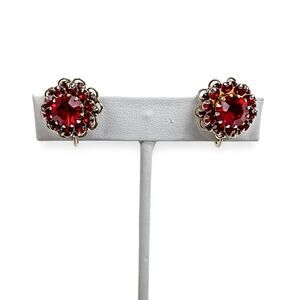 Sarah Coventry Deep Burgundy Clip On Earrings Ruby Red Rhinestone Prong Set Vtg