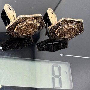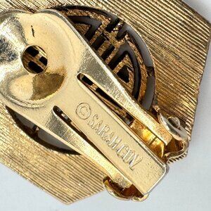 Sarah Coventry Earrings Gold Tone Asian Teahouse 1977 Vintage Clip-on Signed