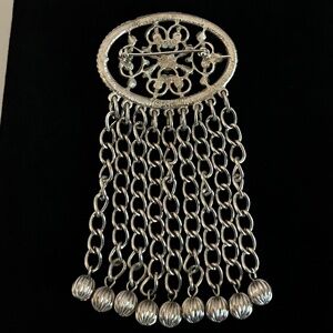 Sarah Coventry Fashion in Motion Silver Tone Metal Dangle Chain Brooch Pin