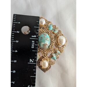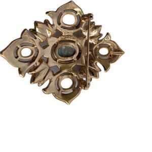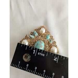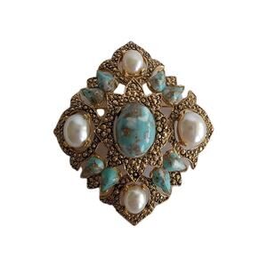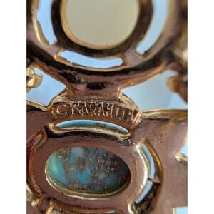 Sarah Coventry Faux Turquoise Cabochon Brooch Gold Tone Vintage 1968 Remembrance