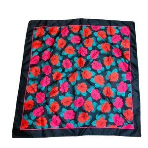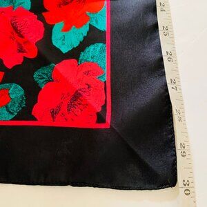 Sarah Coventry Floral Scarf Black With Red & Green Roses Print Vintage Womens Square Accessory