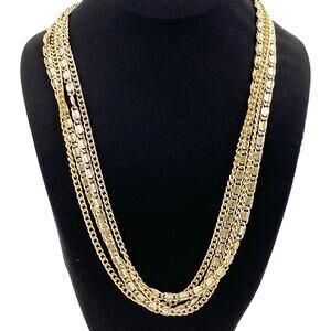 Sarah Coventry Four Dimensions Necklace Gold Tone Multi Strand Chains Textured