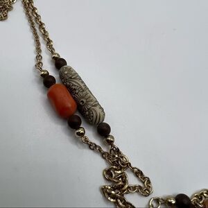Sarah Coventry Gold Extra Long Chain Link Necklace With Clay & Wood Bead Accents
