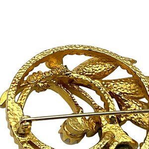 Sarah Coventry Gold Tone Floral Wreath Jade & Pearl VTG Brooch w/Safety Clasp