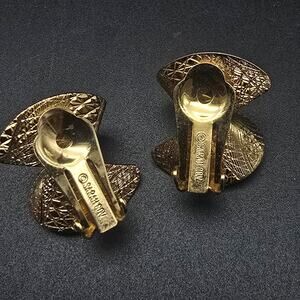 These vintage Sarah Coventry clip on earrings feature twisted gold tone designs and measure .8" x .75"