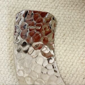 Silver tone metal cuff bracelet - hammered finish - signed Sarah cov - gently worn, no flaws