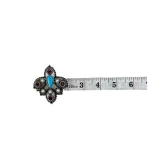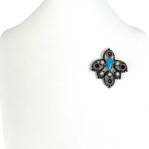 Sarah Coventry Imperial Brooch Pendant Faux Turquoise Purple Stones Silver Tone