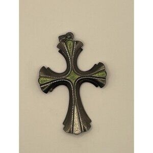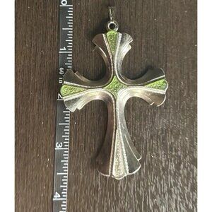 Sarah Coventry Limited Edition 1976 Biker Cross 3.5" Necklace Green Enamel