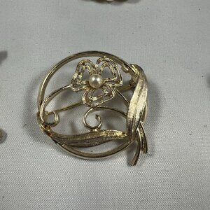 Sarah Coventry Lot Of 5 Jewelry Set - Pearl Necklaces Gold Brooches Crystal Ring