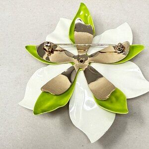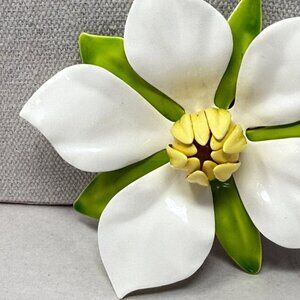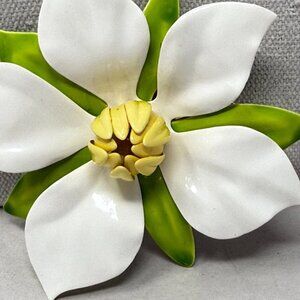 Sarah Coventry Magnolia Brooch Enameled Metal Signed Pin Floral Southern