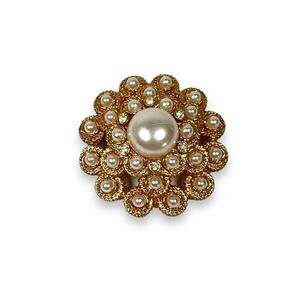Sarah Coventry Moonlight Brooch Faux Pearls Rhinestones Gold Tone Layered Dome