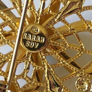 Vintage Tassel Brooch Sarah Coventry Pin Filigree Gold Tone Green Glass Cabochon. Condition is pre-owned and vintage. No chips, cracks, or wear noted. Part of the Peking Duck collection. Measures about 3.25". Please see photos for detailed condition.